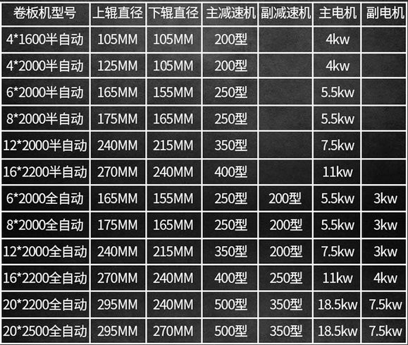 半自動卷板機結(jié)構(gòu)形式為三輥對稱式。上輥在兩下輥中間對稱位置作垂直升降運動,通過絲杠實現(xiàn)上輥的升降,便使所卷制的材料變形,該卷板機是用于金屬板材型材彎曲、變型的一種通用設(shè)備,它借助于專用工具或其它設(shè)備來完成板材端面的預(yù)彎,可以卷制圓形、弧形工件,在石油、化工、鍋爐、水電、造船、工業(yè)設(shè)備安裝以及機械制造行業(yè)中有著廣泛的應(yīng)用。該機器采用倒順開關(guān)(已安裝在卷板機上)來實現(xiàn)卷板的正、反轉(zhuǎn),檢查機器無誤后,調(diào)節(jié)絲杠讓上輥壓至板材表面,把倒順開關(guān)打到“倒”“順”視現(xiàn)場板材的放入端而定讓電動機正轉(zhuǎn)還是把反轉(zhuǎn),卷制一邊后,手動調(diào)節(jié)絲杠讓上輥壓緊板材在“倒”“順”卷制,如此循環(huán)直至達至要求為止。